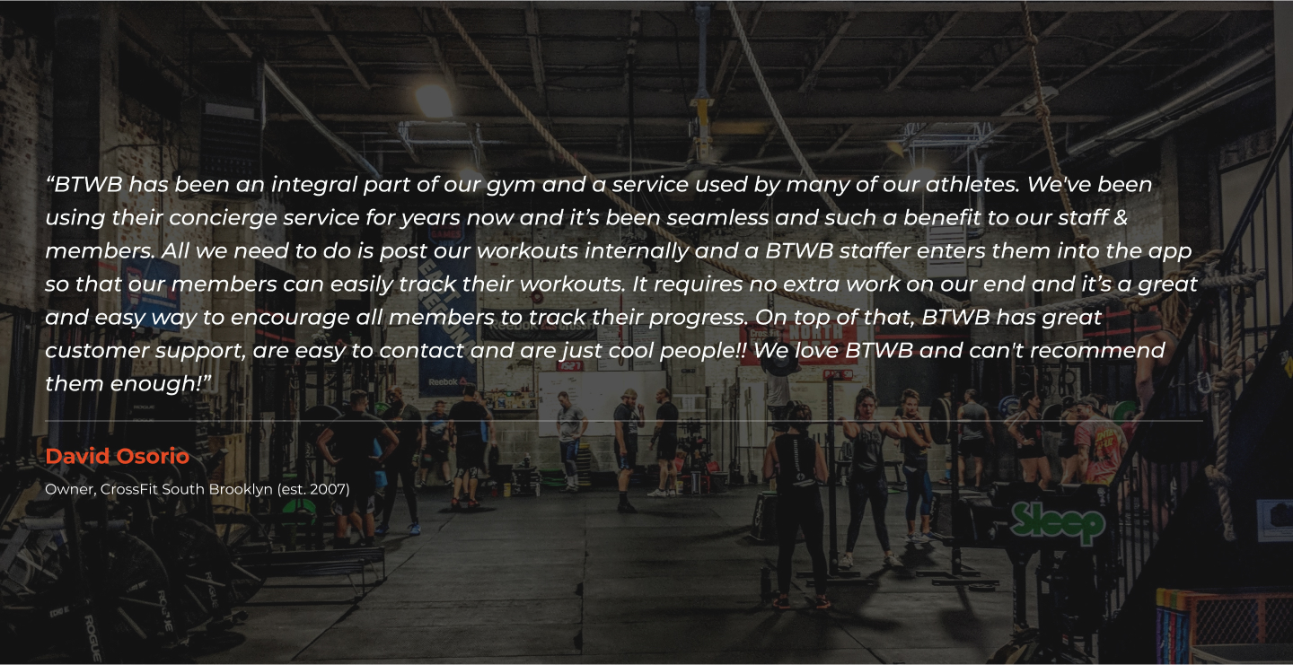 New or OG. Big or Small. Outsourced or In-house Programming. btwb can help your members track their fitness journeys.